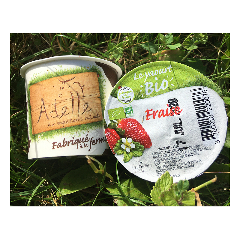 Yaourt au lait de vache bio, argumenté avec une confiture de fraise artisanale