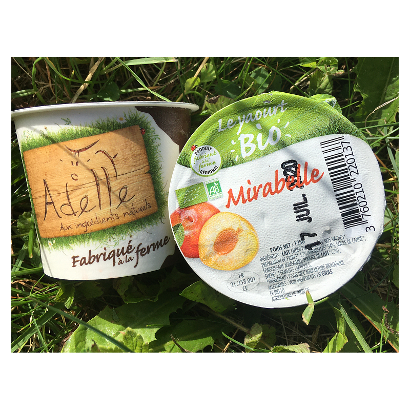 Yaourt au lait de vache bio, argumenté avec une confiture de mirabelle artisanale